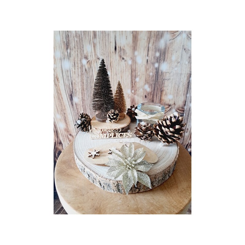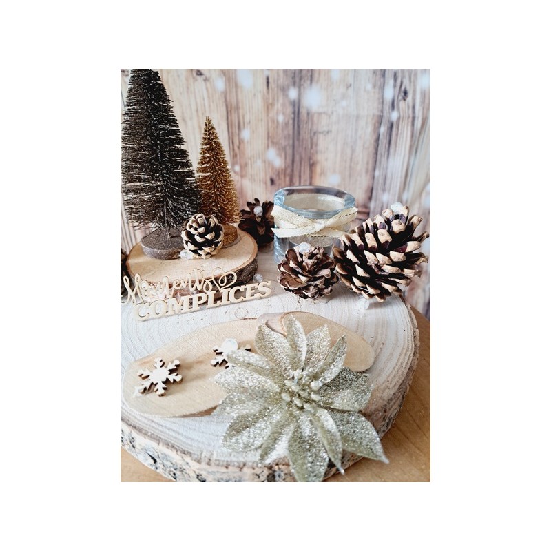 Harmonieusement décoré par des pommes de pin, boules et autres petites décorations, il trouvera sa place au centre de votre table ou en décoration sur un meuble. Il est également composé d'un bougie.