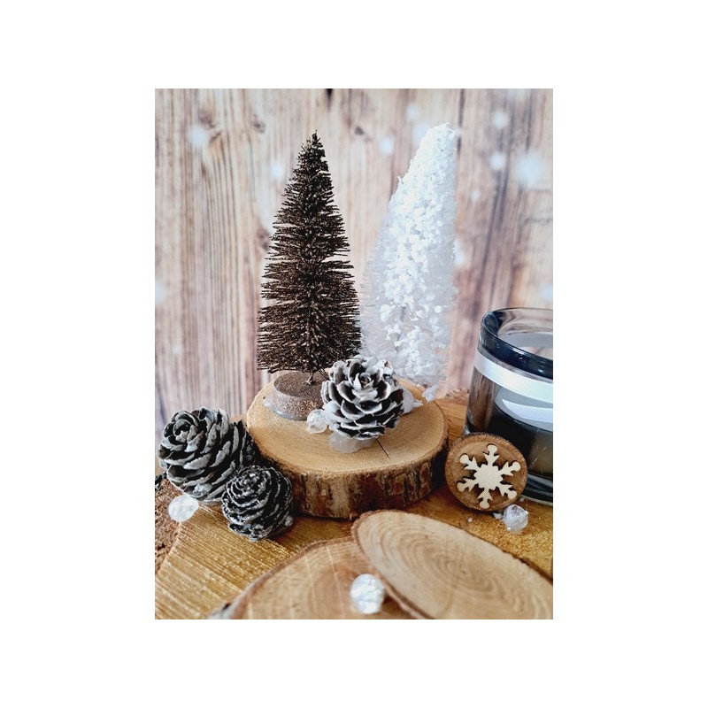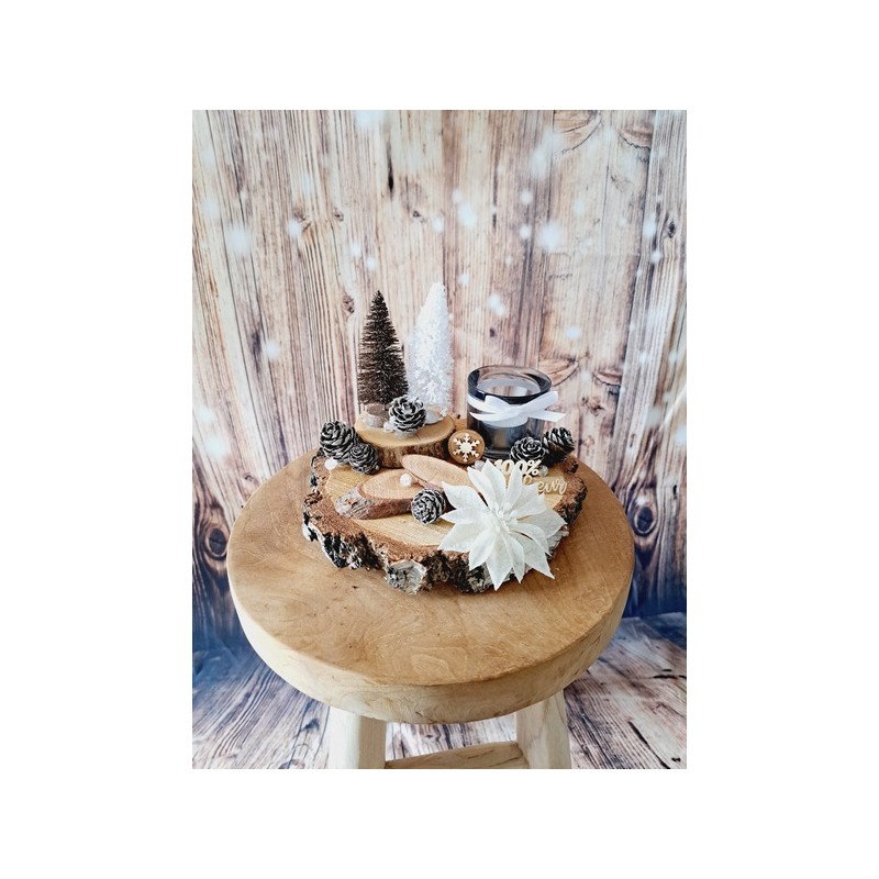 Harmonieusement décoré par des pommes de pin, boules et autres petites décorations, il trouvera sa place au centre de votre table ou en décoration sur un meuble. Il est également composé d'un bougie.