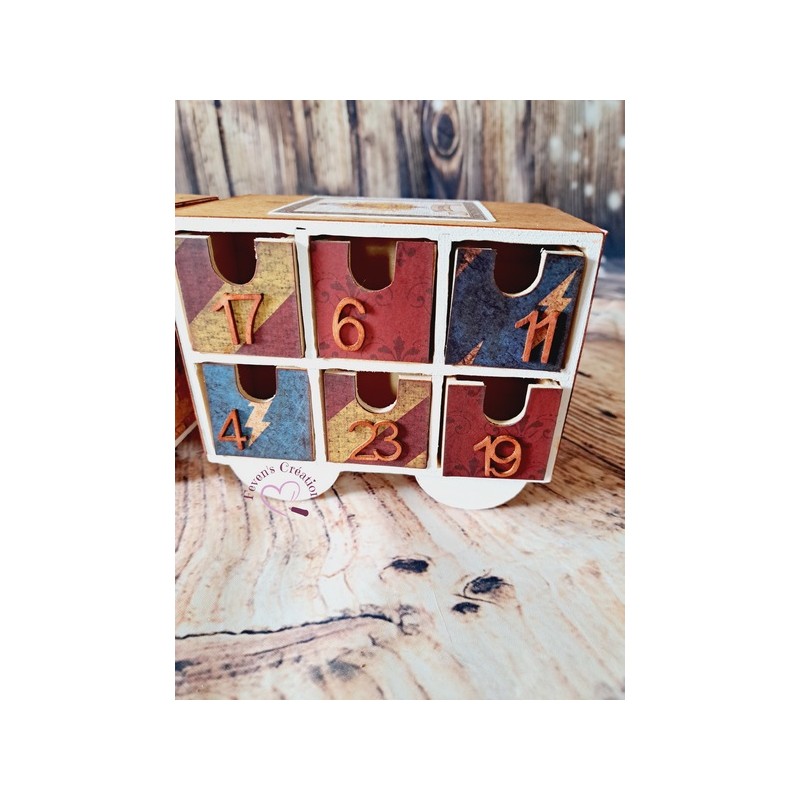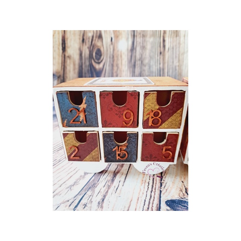 Ce calendrier en bois est joliment décoré Il contient 24 tiroirs à ouvrir dans lesquels vous pouvez déposer friandises ou autres surprise.