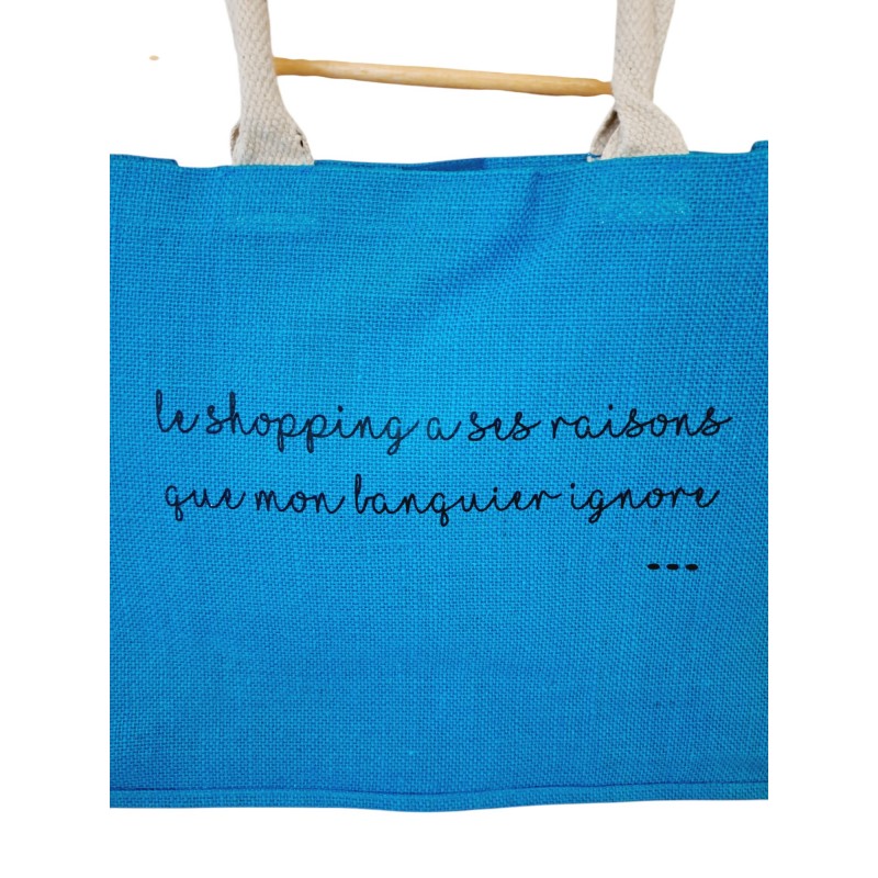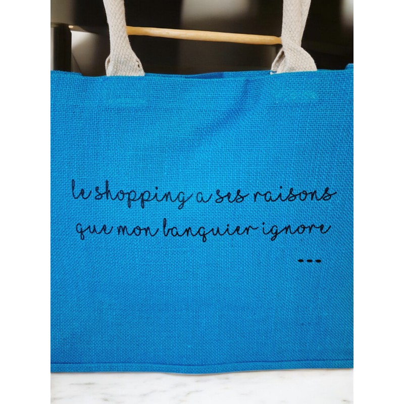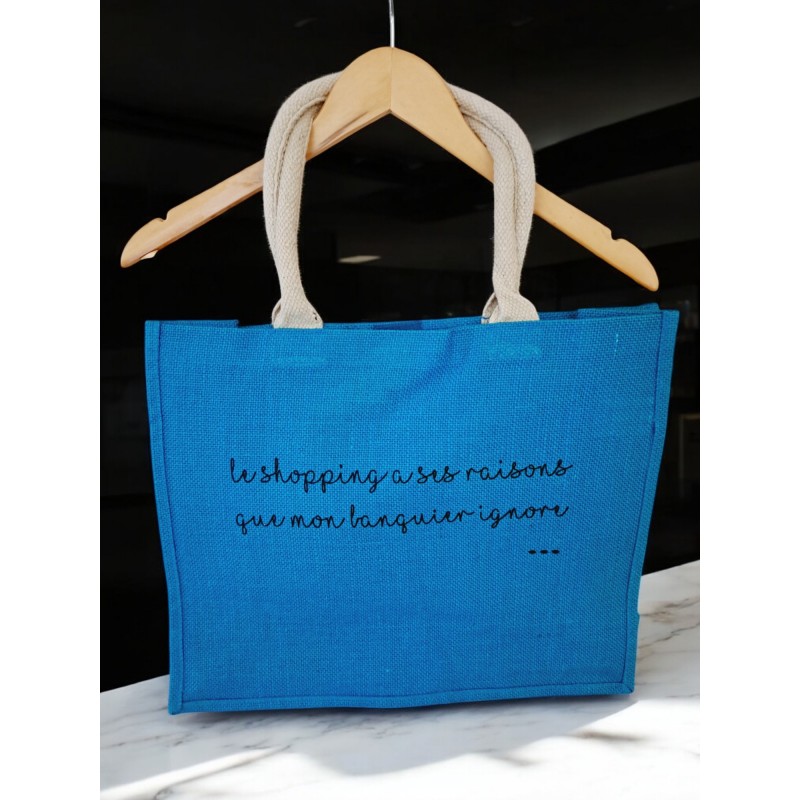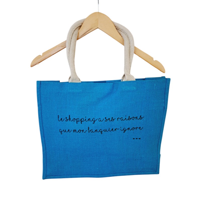 Ajoutez une touche d’humour et de style à vos sorties shopping avec ce sac en jute au message amusant : "Le shopping a ses raisons que mon banquier ignore". Un accessoire incontournable pour toutes les passionnées de shopping !