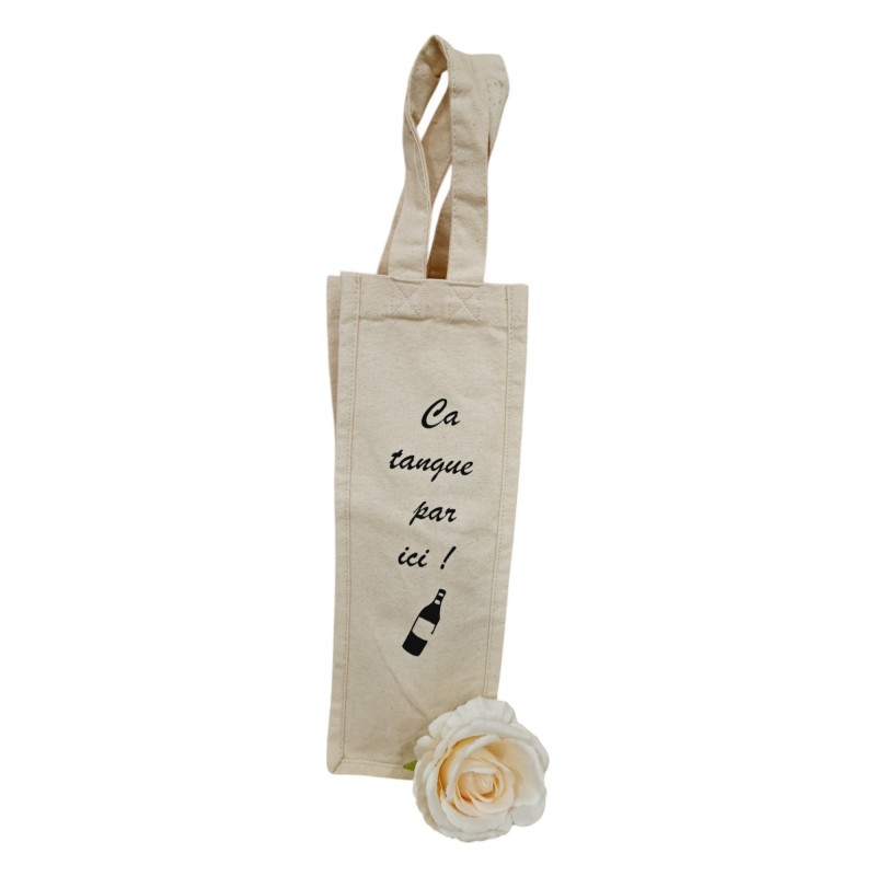 Apportez une touche d’humour et d’originalité à vos cadeaux avec ce sac bouteille personnalisé. Parfait pour les moments festifs, il porte l’inscription "Ça tangue par ici!", un clin d'œil amusant pour les amateurs de vin ou de spiritueux.